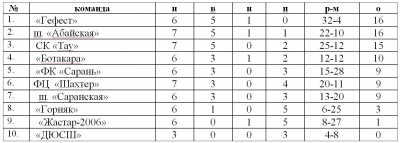 Представляем Вашему вниманию турнирное положение команд в Первенстве Карагандинской области по футболу 2022 г., по состоянию на 04.07.2022 г.
