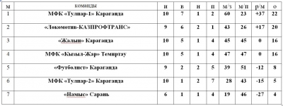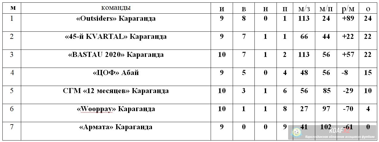Турнирное положение команд (Высшая лига, Первая лига) по состоянию на 31 июля 2022 года, в областных соревнованиях «Открытое летнее Первенство Карагандинской области по футзалу среди любительских команд сезона 2022 г.»