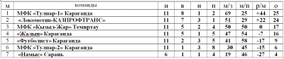 Итоговое турнирное положение команд (Высшая лига), в областных соревнованиях ««Открытое летнее Первенство Карагандинской области по футзалу среди любительских команд сезона 2022 г.»