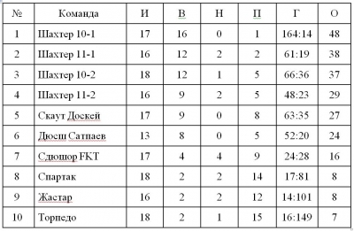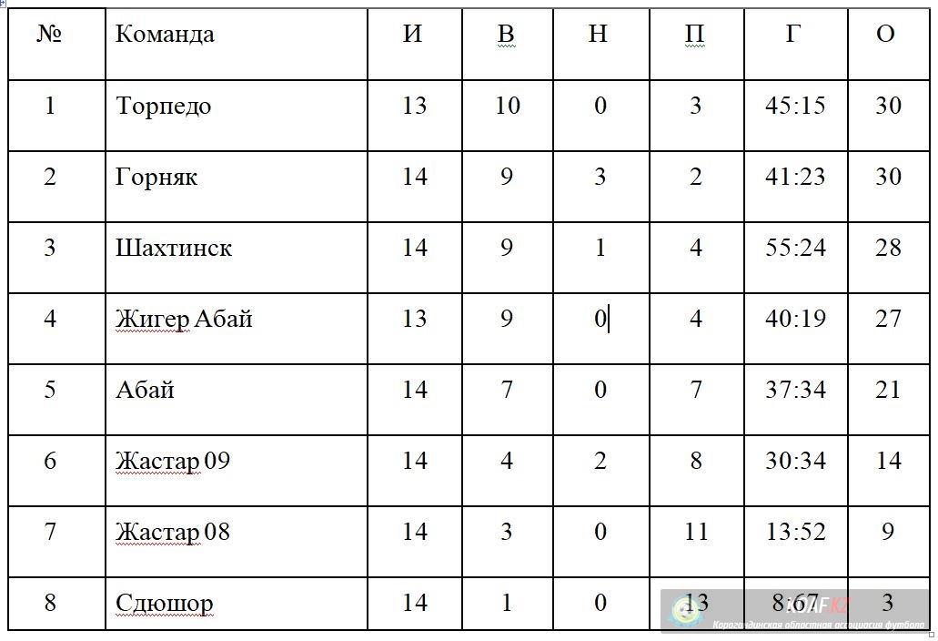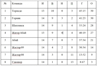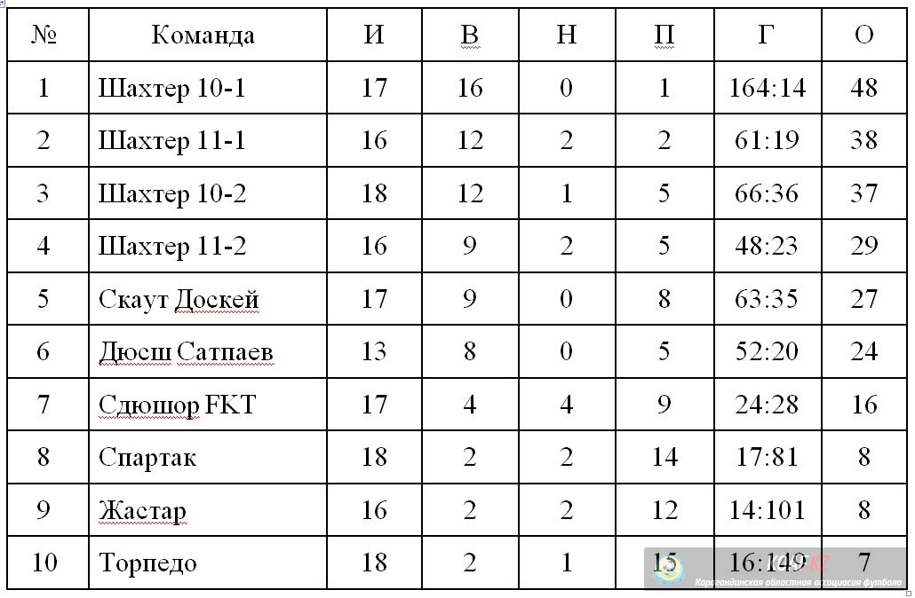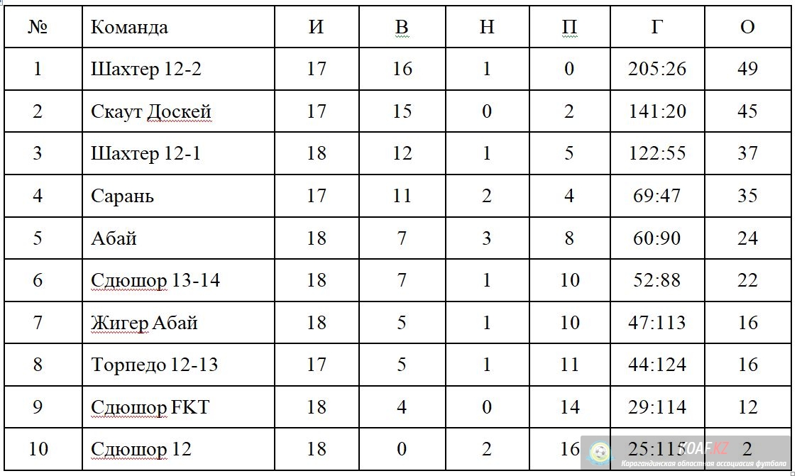 Турнирное положение команд по состоянию на 26 сентября 2022 года, в областных соревнованиях « Первенство Карагандинской Области по футболу среди юношеских команд 2007 - 2009 г.р., 2010-2011 г.р., 2012 – 2013 г.р.»