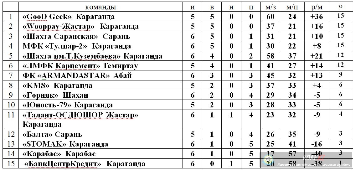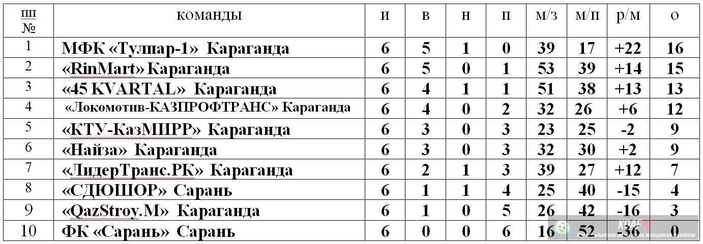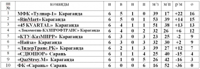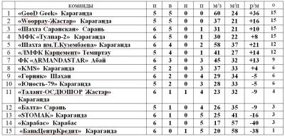 Турнирное положение команд (Высшая лига, Первая лига) по состоянию на 06 декабря 2022 года, в областных соревнованиях «Открытое Первенство Карагандинской области по футзалу среди любительских команд сезона 2022-2023 г.г.»