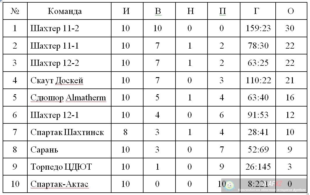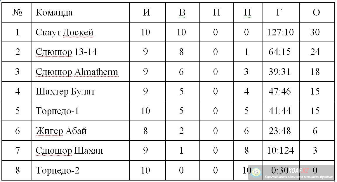 Турнирное положение команд по состоянию на 13 февраля 2023 года, в областных соревнованиях «Зимнее Первенство Карагандинской области по мини – футболу среди юношей 2007-2008 г.р., 2011-2012 г.р., 2013-2014 г.р.»