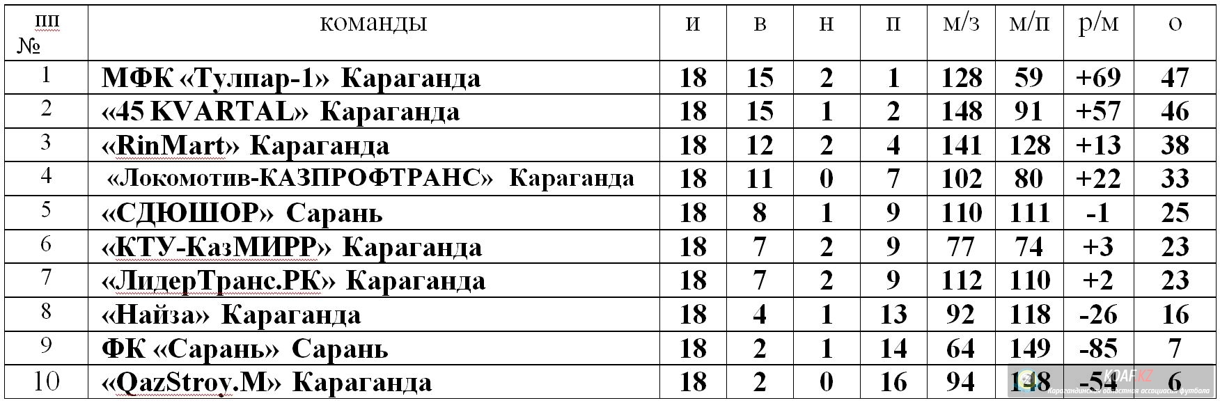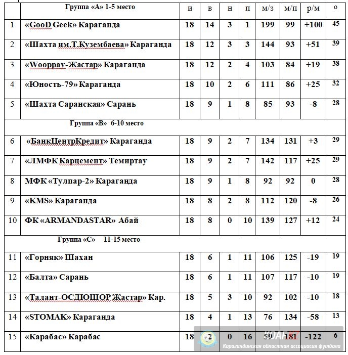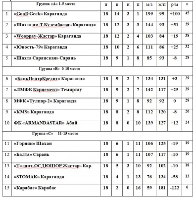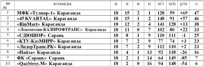 Итоговое турнирное положение команд (Высшая лига, Первая лига), в областных соревнованиях «Открытое Первенство Карагандинской области по футзалу среди любительских команд сезона 2022-2023 г.г.»