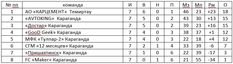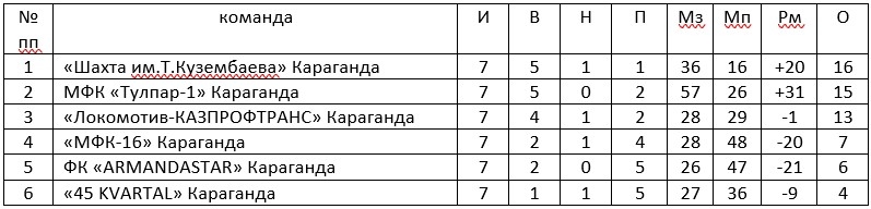 Результаты очередных матчей Первенства Карагандинской области по футзалу