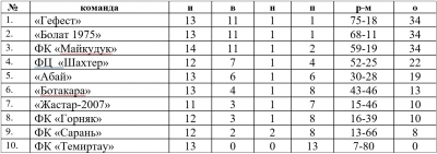 Результаты очередных матчей Первенства Карагандинской области по футболу