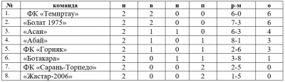 Турнирное положение команд в Первенстве Карагандинской области по футболу на 06 июня 2024 г.