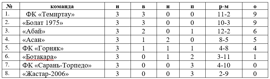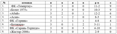 Турнирное положение команд в Первенстве Карагандинской области по футболу на 10 июня 2024 г.