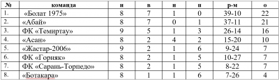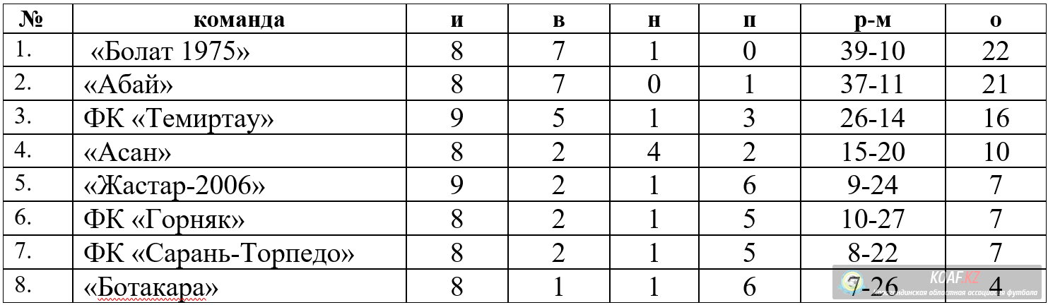 Турнирное положение команд в Первенстве Карагандинской области по футболу на 15 июля 2024 г.