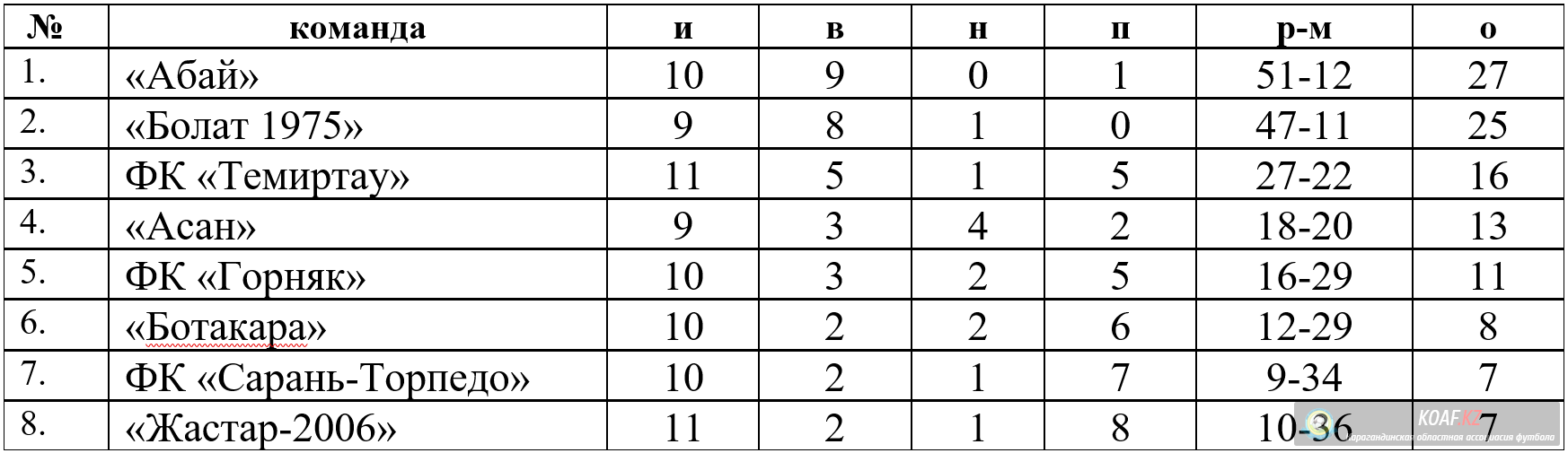 Турнирное положение команд в Первенстве Карагандинской области по футболу на 29 июля 2024 г.