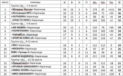 Итоговое турнирное положение команд Первой лиги, в областных соревнованиях «Открытое Первенство Карагандинской области по футзалу среди любительских команд сезона 2024-2025 г.г.
