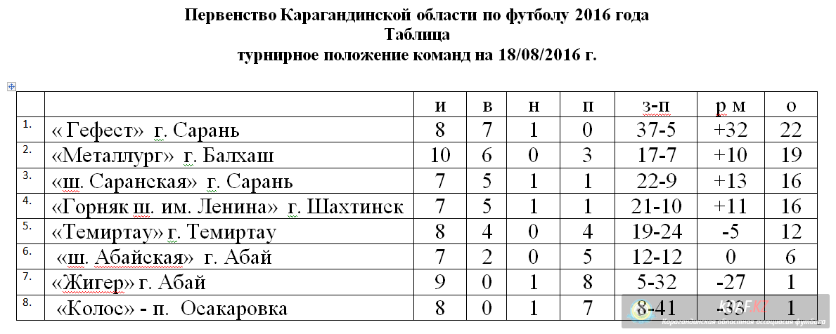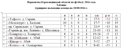 Первенство футбол Турнирное положение команд в Первенстве Карагандинской области по футболу 2016 года, по состоянию на 18 августа 2016 г.скачать dle 10.4фильмы бесплатно Комментарии: 0 Просмотры: 1294 0