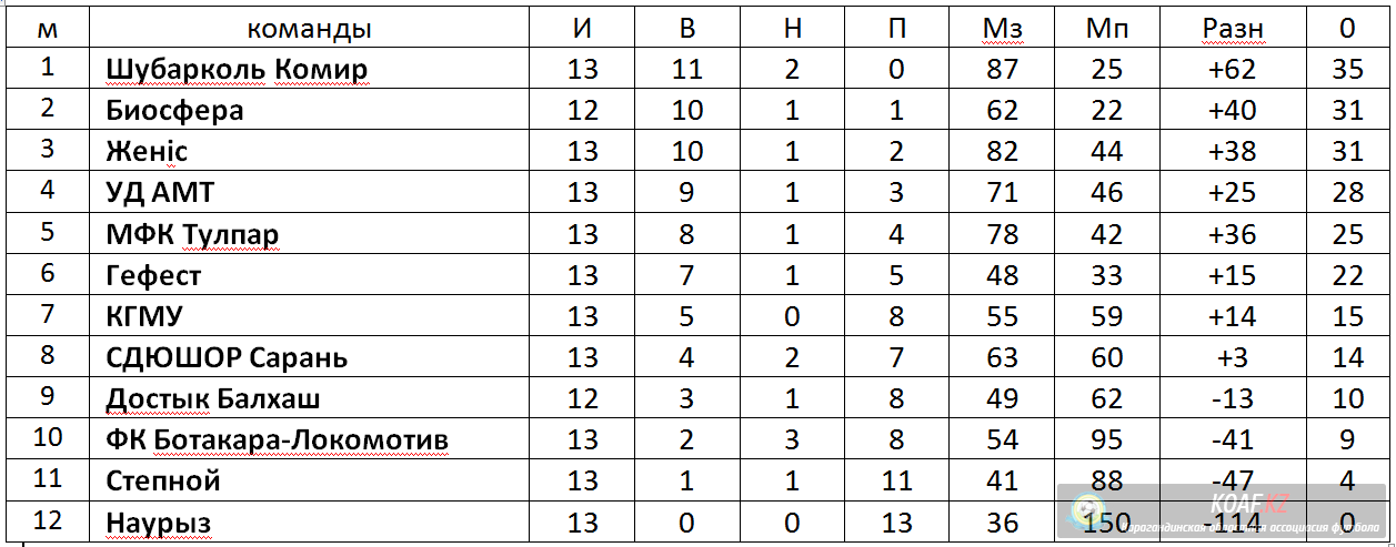 Представляем вашему вниманию результаты матчей тринадцатого тура Первенства Карагандинской области по футзалу среди КФК сезона 2016-2017 г.г. (Высшая лига; Первая лига).