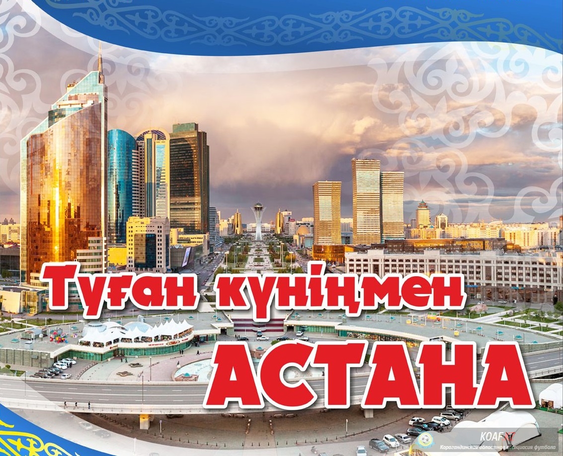 ОЮЛ «Карагандинская областная ассоциация футбола» сердечно поздравляет всех казахстанцев с праздником – Днем столицы. Астана – символ независимости и суверенитета страны. За короткий исторический период провинциальный город превратился в центр экономической и культурной жизни республики. Астана стала реальным воплощением мечты и грандиозных планов.