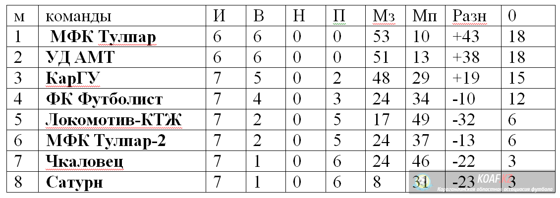 Представляем Вашему вниманию Таблицу и результаты матчей Седьмого тура, Открытого летнего Первенства Карагандинской области по футзалу 2017 года среди любительских команд.