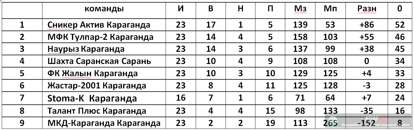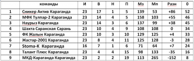 Представляем Вашему вниманию ИТОГОВУЮ ТАБЛИЦУ Первенства Карагандинской области по футзалу сезона 2017-2018 г.г., среди команд Первой лиги.