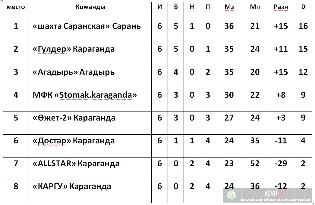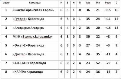 Представляем Вашему вниманию текущую таблицу и результаты Шестого тура, Летнего Первенства Карагандинской области по футзалу среди любительских команд 2018 г. (Первая Лига).