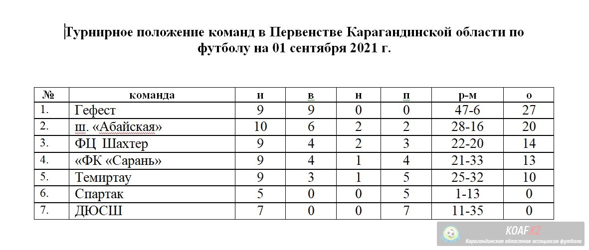 Первенство области по футболу. Представляем Вашему вниманию таблицу Первенства Карагандинской области по футболу среди любительских команд 2021 г., по состоянию на 01.09.2021 г.скачать dle 10.4фильмы бесплатно Комментарии: 0 Просмотры: 679 1