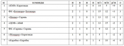 Турнирное положение команд (Высшая лига, Первая лига) по итогам Второго тура, в областных соревнованиях «Открытое Первенство Карагандинской области по футзалу среди любительских команд сезона 2021-2022 г.г.»