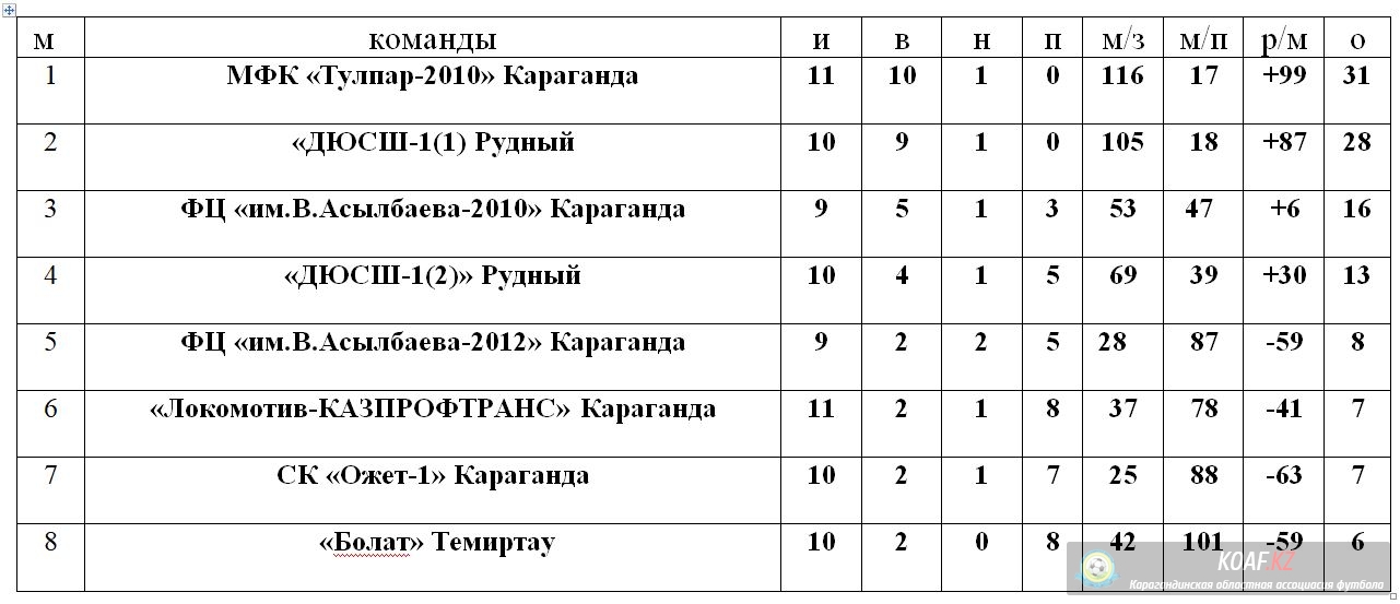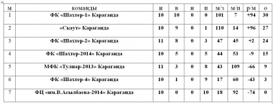 Турнирное положение команд (U-8, U-11) по по состоянию на 14 февраля 2022 года, в областных соревнованиях «Открытое Первенство Карагандинской области по футзалу среди детских и юношеских команд сезона 2021-2022 г.г.»