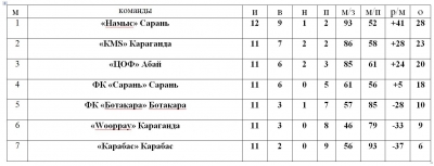 Турнирное положение команд (Высшая лига, Первая лига) по состоянию на 14 февраля 2022 года, в областных соревнованиях «Открытое Первенство Карагандинской области по футзалу среди любительских команд сезона 2021-2022 г.г.»