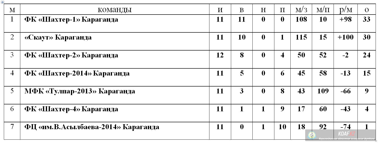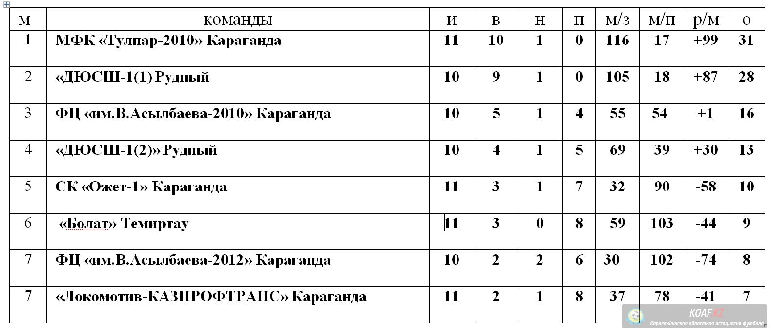 Турнирное положение команд (U-8, U-11) по по состоянию на 21 февраля 2022 года, в областных соревнованиях «Открытое Первенство Карагандинской области по футзалу среди детских и юношеских команд сезона 2021-2022 г.г.»
