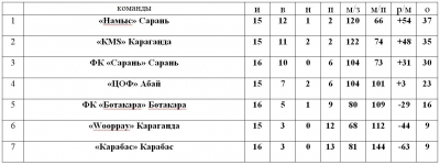 Турнирное положение команд (Высшая лига, Первая лига) по состоянию на 04 апреля 2022 года, в областных соревнованиях «Открытое Первенство Карагандинской области по футзалу среди любительских команд сезона 2021-2022 г.г.»