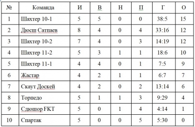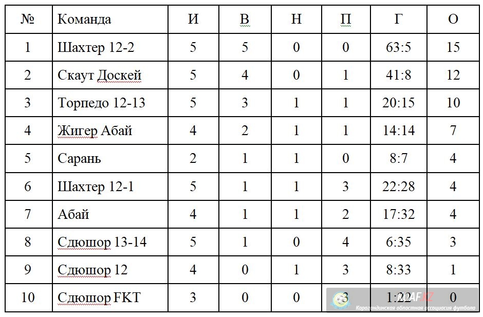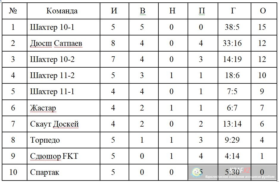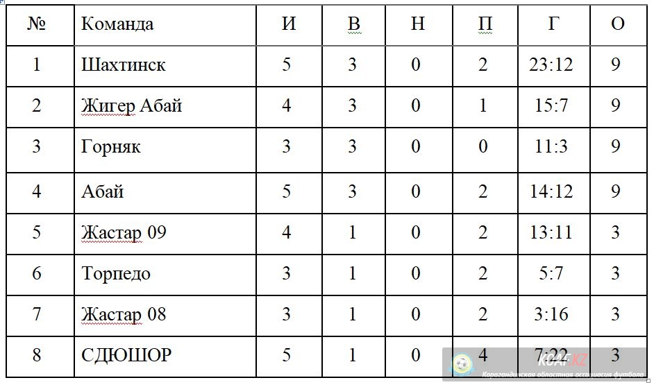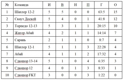 Турнирное положение команд по состоянию на 07 июня 2022 года, в областных соревнованиях « Первенство Карагандинской Области по футболу среди юношеских команд 2007-2009 г.р., 2010-2011 г.р., 2012 – 2013 г.р.»